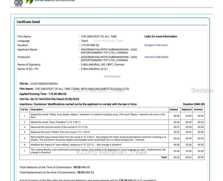 GOAT படம் இவ்ளோ நீளமா.. ரன்டைம் இதோ! படத்தில் இருந்து நீக்கப்பட்ட கெட்ட வார்த்தைகள்