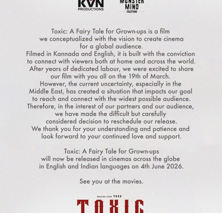 மத்திய கிழக்கு பதற்றம் காரணமாக யாஷ் நடிக்கும் டாக்ஸிக் திரைப்படம் வெளியீட்டு தேதி ஜூன் 4க்கு மாற்றம் மத்திய கிழக்கில் நிலவும் அசாதாரண சூழ்நிலை காரணமாக யாஷின் ‘டாக்ஸிக்: எ ஃபேரி டேல் ஃபார் கிரோன்-அப்ஸ்’ திரைப்படம் வெளியீட்டு தேதி 4 ஜூன் 2026க்கு…
